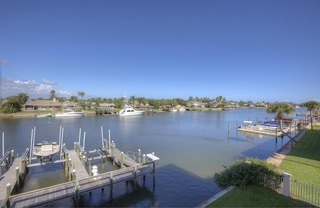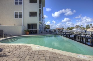 ENJOY THIS RARE OPPORTUNITY TO LIVE IN NEW SMYRNA ON THE WATER AND KEEP YOUR BOAT. This is a Boaters dream on a deep water channel less than 250 yards from the Intracoastal Waterway. BOAT DOCK with lift included for up to 22 ft. boat. 2 buildings with 4 units each, this unit has a private loft with 2409 sq. ft. of living space, TWO car garage, TWO air conditioned storage spaces, TWO screened waterfront balcony, heated pool with infinity edge and lush landscaping. Unit features granite countertops in kitchen with ss sinks, large eat-in area, breakfast bar and generous double pantry. Carpet and 18in. tiled flooring, full size washer and dryer, cable and phone outlets in all bedrooms, living room and kitchen. Private infinity pool area. Outstanding rental in an area close to restaurants, shops and historic Flagler Ave