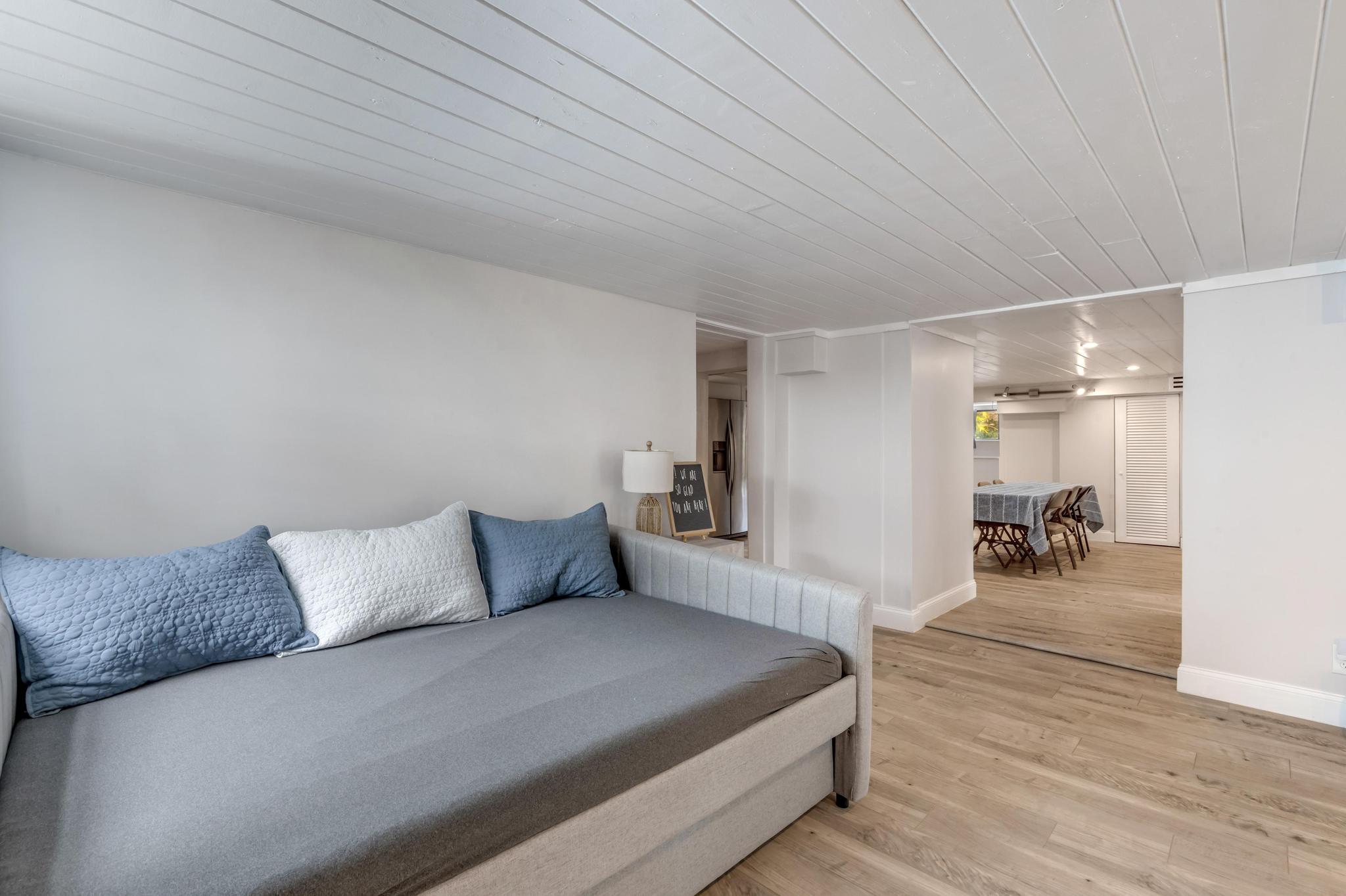 - Upper Level: Spacious 3-bedroom, 2-bath home with high ceilings and plenty of natural light. Open-concept living and dining areas, perfect for entertaining or relaxing with family.